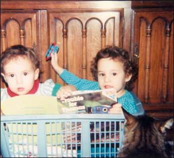 Me (right), my sister Angie (left), and our late cat, Claudius.