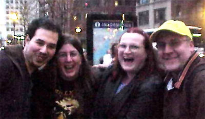 The guy next to me (one in the cap) is my friend Roy - he's a nice, sweet gentleman looking for lady companionship. He's into distributionism, is Catholic, an excellent cook, writes articles for a GK Chesterton magazine, has a crazy imagination (also a fiction writer), and will worship the ground the perfectly intellectual lady will walk on.