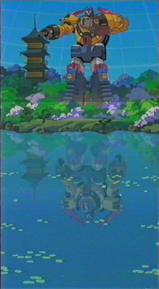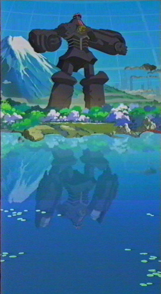 ok you are probably wondering why the reflection in the water is different...well I wasn't able to cathc a shot of the frame with Big O standing like like...it was too blurry for some reason. So I had to go with the next frame insted