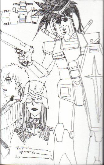Kohta Hirano's a big Gundam fan, so he included a bit of fanart. The back of the first volume has a "Self Portrait-as-Zakarello" and a list including is favorite Space Fortress (A'bao'que), and favorite Gundam character (Haman Karn), and states a desire to be said character's father.