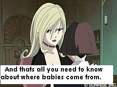 Big O- "Should I have Norman explain it to you..She loves you and you love her but you are too dumb to see it. That is why she should be mine you louse."