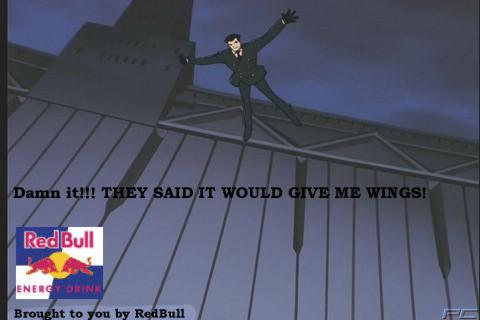 Sorry about double post... but i got another...(thank you GIMP) Now the schwarzwald thing is over done(by me) and... i think R.Smith Already made apicture of schwarzwald holding redbull... So... *cough* RED BULL!!! IT GIVES YOU WINGS!!! WEEE IM A FLYING MEGADUES... just one explanation... OH and please someone tell me they UNDERSTOOD the one about beck...*hint hint comb**hint hint Conans o brans hair!!!*