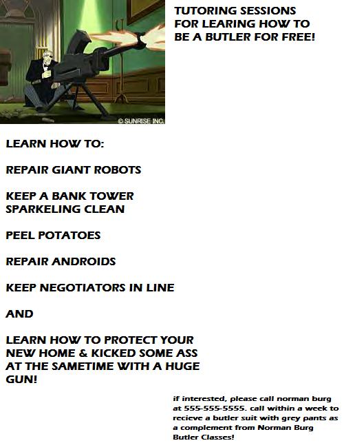 Blue Crow, I like your stuff..can you imagine a Drunk Megadeus fight? |