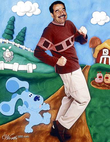 Those are good. Keep 'em comin'! LOL, especially the one with Saddam's head on Steve's body from Blues' Clues.