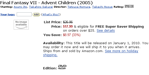 to sound stupid but has FF7 Advent Children came out yet on DVD