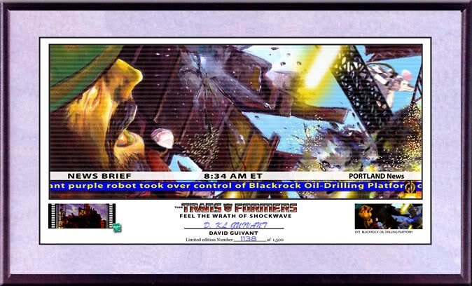 Update! After a little searching I found a bunch of Lithographs by a guy named David Guivant. He says their for the upcoming movie, apparently the movie is gonna be based on the original Marvel Transformers Comics from the 80's. here they are! enjoy! (56kers warning!) |